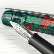 This fountain pen features a high-quality, German-made stainless steel #6 nib and comes with a standard international converter and one long blue ink cartridge. You can also convert it to eyedropper fill.