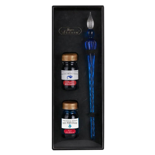 Jacques Herbin Round Glass Dip Pen and Inks Gift Set - Navy Blue