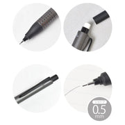 The Kuru Toga eliminates this problem with the use of an ingenious lead rotation mechanism that continually rotates the pencil lead as you write. A spring-loaded clutch twists the lead incrementally every time you lift the pencil from the paper. This allows a uniform wearing of the lead to create a conical tip shape that provides a fine, consistent line.