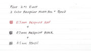 Elegance and functionality are combined in Pilot's 2+1 Evolt multi-pen, making it an attractive, practical gift. Of course, you may not want to give it away, as it is also the perfect addition to your own office or desk! The aluminum body is a beautiful shiny metallic color with a silver clip, tip, and other accents. With the following three functions, the pen covers most of your basic writing needs: 0.7 mm black ballpoint, 0.7 mm red ballpoint, and 0.5 mm pencil. Rotating the top half of the body lets you switch easily between the functions. There is also a refillable eraser, found by unscrewing the silver cap at the top. The pen is easily refillable, taking Pilot RF-8 0.7mm ballpoint refill and 0.5mm leads.