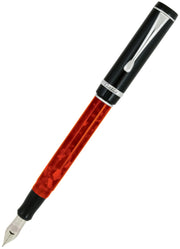The rich red resin patterns in this pen are so alluring you might spend more time looking at this than using it. It features chrome silver highlights, a #6 steel nib and a flat top screw on cap. A international converter is included for use with bottled ink. International short cartridges available separately.