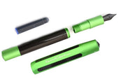 This stunning green and black blended pen is made of a blend of carbon fibre aluminium and is compact when capped (10.8cm) but very comfortable when posted (12.5cm long). Thus the Kaweco slogan "Small in the pocket, great in the hand."