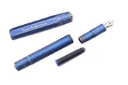 This iconic "Jeans" stone washed blue pen is made of solid aluminium and is compact when capped (10.1cm) but very comfortable when posted (12.7cm long). Thus the Kaweco slogan "Small in the pocket, great in the hand."