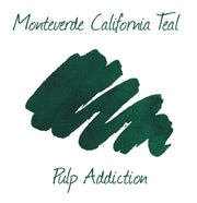 A 2ml sample vial of Monteverde California Teal fountain pen ink. Monteverde ink is lubricated to help prevent it from drying out in your pen. A deep, sheening teal is sure to make an impression. Inspired by the saturated greens of the Pacific Ocean, this ink has a dark burgundy sheen in heavy applications. Delightful to use even in the fussiest of pens. The lubrication really shows with nice flow and a reasonably fast dry time.