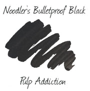 2ml sample of Noodler's Bulletproof Black fountain pen ink, in a labeled plastic vial. Bulletproof Black is probably the most famous permanent black ink on the market today.
