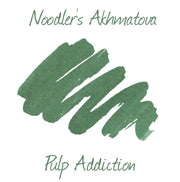 Noodler's Ahkmatova lays down as a well saturated green colour that dries to a powdery grey green reminiscint of limestone and quite unique. It is feature rich, waterproof, fluorescent under U.V. and bulletproof. It behaves fantastic, little to no bleed through and no feathering. Noodler's inks are handmade, which can result in minor color variations between batches.