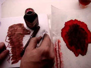 "Black Swan in English Roses" is the darker cousin to the brighter "Australian Roses" as it has a pure prime red for its core color and typically creates a WWI poppy symbol when blotted upon absorbent paper (as is demonstrated in several photos of this ink). Again, designed with the Noodlers flex pen in mind for maximal shading and highlighting results which can vary upon different types of paper (conventional non-coated papers are always best). For use as either that distinctive note and signature or shaded sketch art creations it is an ink filled with emotion as well as explained in the video made describing its properties, the label art, and how it unavoidably makes that long known memorial symbol of the first modern global conflict.