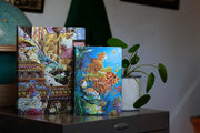 The Paperblanks Maiden Voyage journal showcases the layered style of American artist James C. Christensen (19422017). It beckons you to embark upon a journey into pure possibility with a swaddled astronaut, a tea-sipping dragon and other fantastical attendants. The longer and closer you look, the more out-of-this-world details emerge.