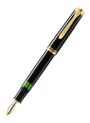 This is the iconic black version of the Pelikan Souveran M600 mid sized fountain pen. The M600 is the mid version of the Souveran range and is apopular size, suitable for the average hand. It features are large 1.5ml differentiated piston filing system that smoothly takes up bottled ink.