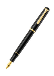 This is the iconic black version of the Pelikan Classic P200 mid sized fountain pen. The P205 is the gold plated version of the classic range and is a popular size, suitable for the average hand. This is one of the few Pelikan pens to use a cartridge / converter filling system. It accepts International long and short cartridges including the stunning Pelikan Edelstein range. A very handy, high quality travel pen.