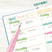 The Fude Touch is a plastic tip brush style pen, with a recently expanded mature color line. These saturated water-based colors are blendable with each other and with water, so you can get an even greater range of color! The flexible tip is small and on the firmer side, so it is great for beginner brush lettering! Water-Resistant ink.