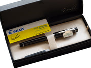 The Pilot Custom 912 fountain pen collection offers elegant classic styling and a superior, customized writing experience. This black fountain pen features a 14k gold nib for a smooth writing experience and complementary black trim. The pen comes with a Pilot CON-70 converter, which holds an ample ink supply while uniquely combining the characteristics of a vacuum-filling and push-button converter. You can also use proprietary Pilot/Namiki ink cartridges (one is included) if you prefer. Each Custom 912 pen is packaged in an elegant Pilot gift box.