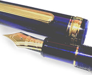 The Platinum 3776 represent the pinnacle in Japanese premium fountain pen engineering. This pen features gold-plated trim and a stunning transparent blue body inspired by the stained glass windows of the Chartres Cathedral near Paris. The medium nib, like the German fine nibs is perfect for everyday writing.