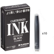 Pack of standard black ink cartridges for use in Platinum fountain pens. Pack of 10.