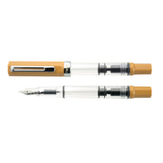 The TWSBI ECO fountain pen boasts an incredible value with its piston filling system and affordable price. Like many other TWSBI fountain pens, it features a crystal clear acrylic barrel so you can see your ink level, and a opaque yellow-brown cap and piston knob. The pen cap has an inner cap to ensure a perfect seal when stored away. It is completed with silver coloured trim and a stainless steel nib.