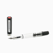The TWSBI Eco Black Fountain pen is an exceptional value clear acrylic demonstrator fountain with a large piston fill mechanism and fine quality stainless steel nib.