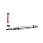 The new TWSBI Vac700R in Iris is very different from the rest of the pens in the TWSBI lineup, with the rainbow effect on the trim, nib and section! ** Please note that no 2 pens are exactly alike, but they will all be similar in colouring due to the nature of the finish. **
